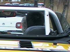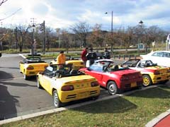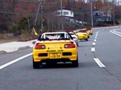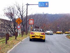 | あまざんさんは本日も耳当てを装備して、 ドライブしていました。う〜ん、温かそう。 | 途中登別温泉街を抜けるのですが、道行く人たちが楽しそうに、ビート一行を見ていました。 |