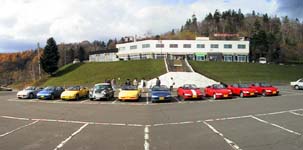 桂沢湖畔にて。なぜか今回は赤が一番多くなってしまった。