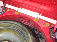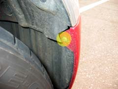 続いてタイヤハウス内のコーナーエンドスクリューを外します。
