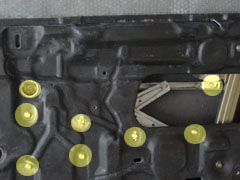 まず、パワーウィンドウのレギュレータを取り付けます。