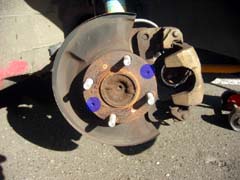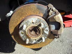 ブレーキローターとブレーキパッドを外したところ。