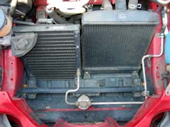 普通はお目にかかれない、ラジエータ(右)とエアコンのコンデンサ(左)。