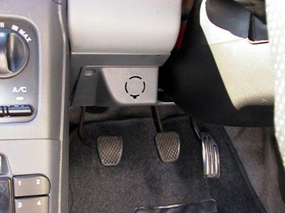 シガーライターはフロント コンソールとステアリングコラムの間に付きます。