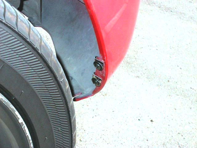 マッドガード,L.リアと、マッドガードフィッティングにスクリューワッシャー 5X16を通したところ。