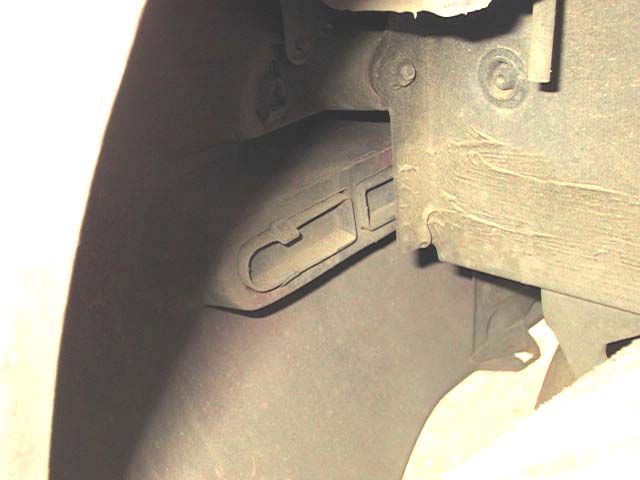 リアバンパ裏をリアフェンダから覗くと、リアバンパアッパキャップがバンパに、