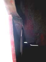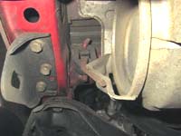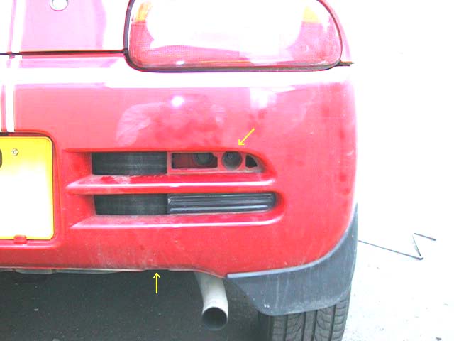 右の丸い穴の、奥に見えるのがバンパ取り付けボルト。