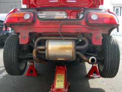 マッスルフレームR1の取り付けのためには、リアビームを取り外す必要があるので、