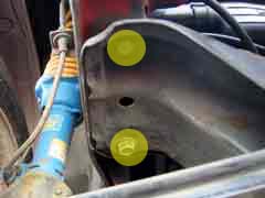 さていよいよリアビームを外すわけですが、その前に現在の取り付け位置がわかるように、