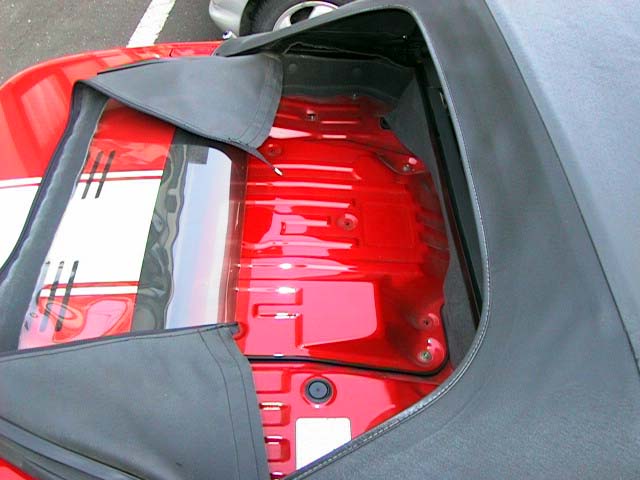 エンジンへアクセスする為にまず、リアウインド下部のテープを剥がし、
