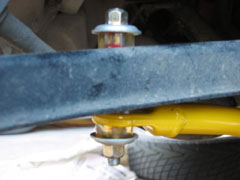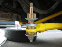 スタビライザーにボルトをブッシュとワッシャで固定します。