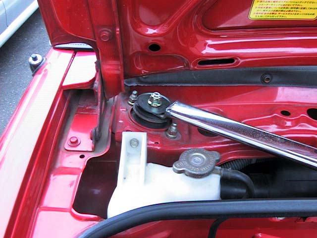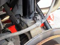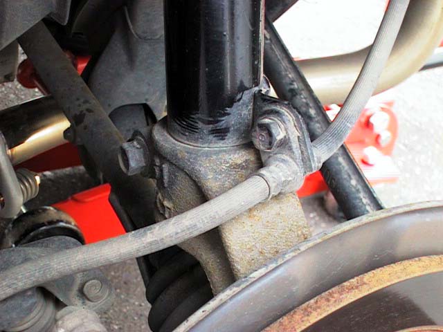 ブレーキホースクランプボルトとダンパーロックボルトを外したら、