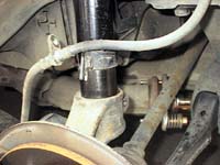 ダンパアッセンブリを外すとロアアームだけで支えている状態になるので、