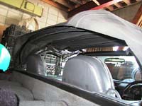 ソフトトップクロスをめくると、リアルーフフレームにソフトトップクロスが止めてありますが、