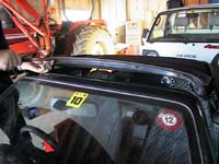 ソフトトップ前面にある6本のスクリュを外して、フロントサポートプレートを外します。