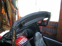 トランクリッドを開けて、リアウインドの下をスナップボルト5つで取り付けます。