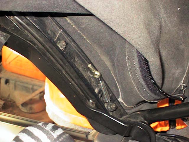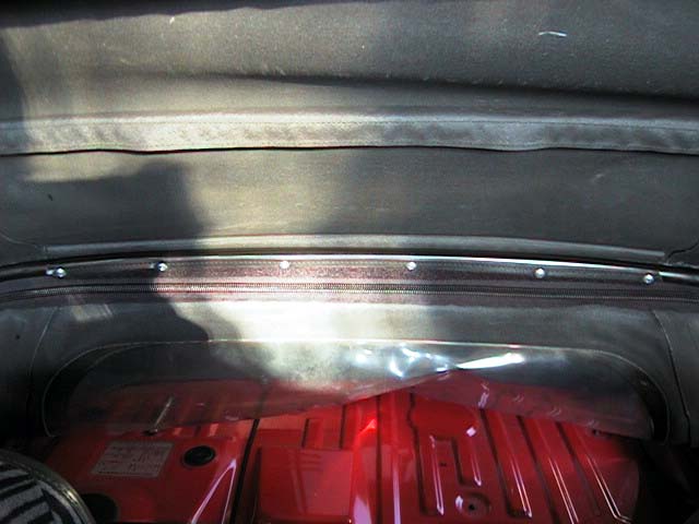 ソフトトップクロスの内側をリアルーフフレームにスクリュ6本で固定し、