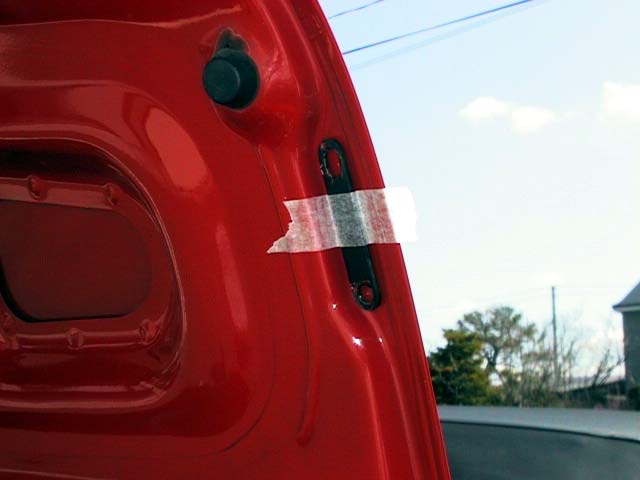 トランクハーネスを針金の先に結んで、トランクリッド内を通線します。