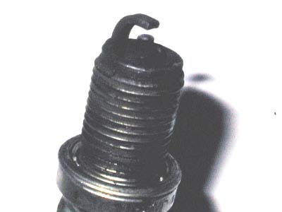 交換したスパーク プラグの電極を見ると、カーボンで真黒にくすぶっていますが、