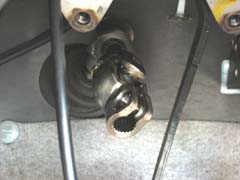 ユニバーサルジョイントとギアボックスピニオンを結合しているボルトがあるので、これを外します。