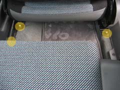 純正のシートは、前2ヶ所、後3ヶ所(1ヶ所はカバーに隠れています)でボルト止めされているので、